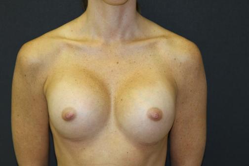 45 year old very athletic woman who has been self-conscious about the small size of her breasts since high school. Textured 350cc Sientra Gummy Bear implants placed below the muscle. She is ecstatic about her new look. Six month follow up.